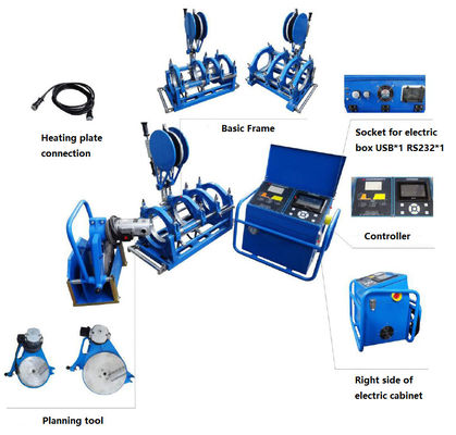 La máquina de fusión CNC está compuesta por el cuerpo de la máquina, el sistema de autocontrol, la herramienta de planificación y la placa de calefacción.Es fácil de usar el software y el panel de control permiten ver los estándares de soldadura más utilizadosAl seleccionar cualquiera de los diámetros estándar y de tubería o SDR, todos los parámetros de soldadura (presión, tiempo, temperatura) se calcularán automáticamente de acuerdo con su estándar.
